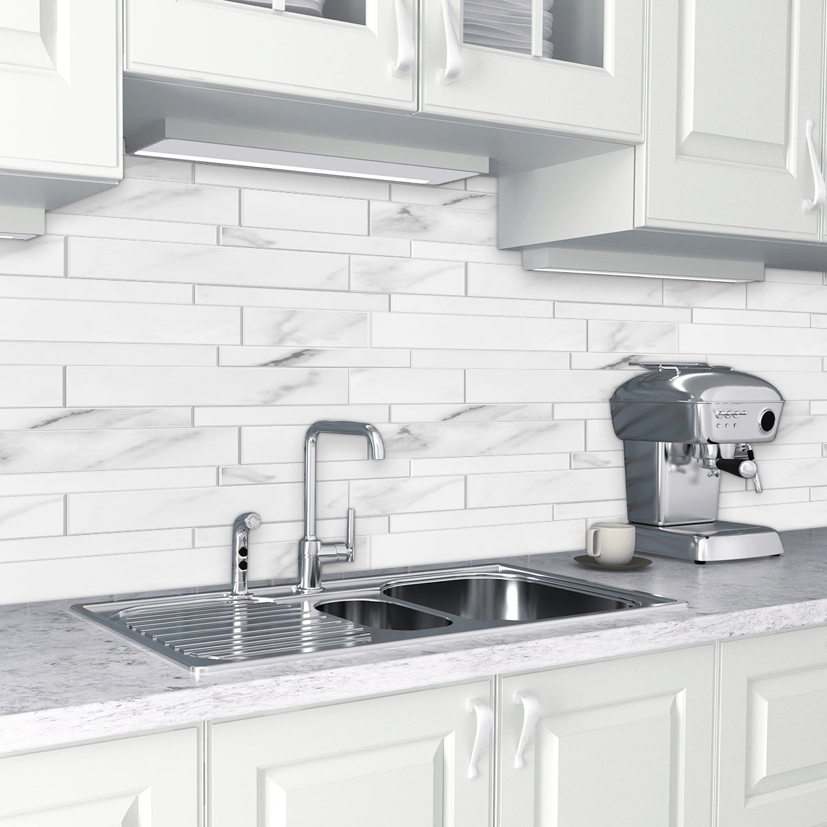 Bring a bright, fresh feel to your kitchen, bathroom, or laundry with this White Subway Peel & Stick Vinyl Tile. Its classic layout and soft white finish make it a versatile choice for almost any style, from coastal to contemporary.
